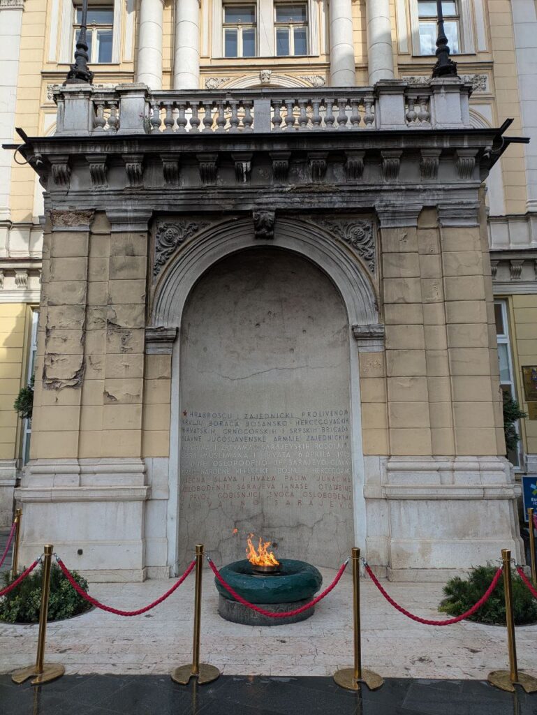 Gegen Ende der Führung kamen wir noch zum Denkmal der ewigen Flamme. 1425 Tage wurde Sarajevo im Bosnienkrieg belagert. 1425 Tage wurde Sarajevo verteidigt. Tausende sind gefallen – nur, dass sich heute jemand an der ewigen Flamme die Schuhe trocknen kann. Den symbolträchtigen Schein des Feuers trübte dieser Anblick etwas, aber am nächsten Tag konnten wir sie zum Glück nochmal ungestört sehen.
